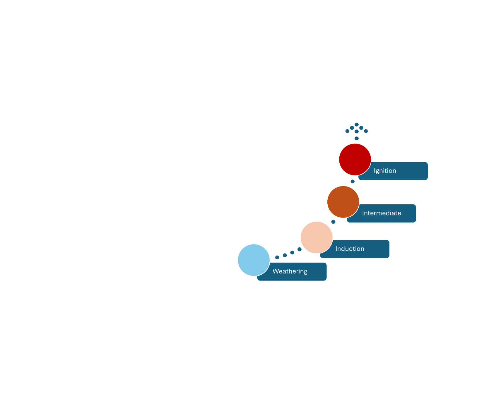 The final stage is ignition. It is critical that risk management and testing has been sufficient to prevent this happening at your site. In the lead up to ignition, the temperature of the bulk product may exceed 500°C and detonate via the decomposition of Ammonium Nitrate to ammonia gas and nitric acid. Ammonia has much higher vapour pressure than nitric acid and the melt self-acidifies, increasing the heat of reaction with any sulphide at temperatures greater than 150°C. The ammonia gas cracks off hydrogen at approximately 500°C and ignition and/or detonation of hydrogen can cause shock initiation of sensitised bulk products.